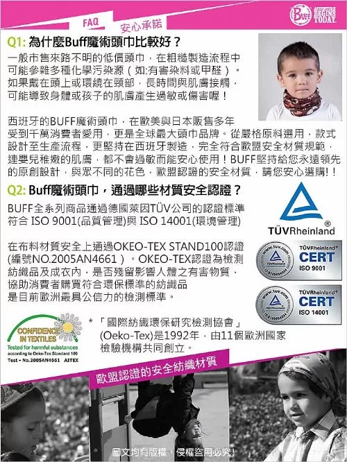 | 全球魔術頭巾的領導品牌BUFF 堅持西班牙設計與製造 無污染材質讓小寶貝安心出門 |