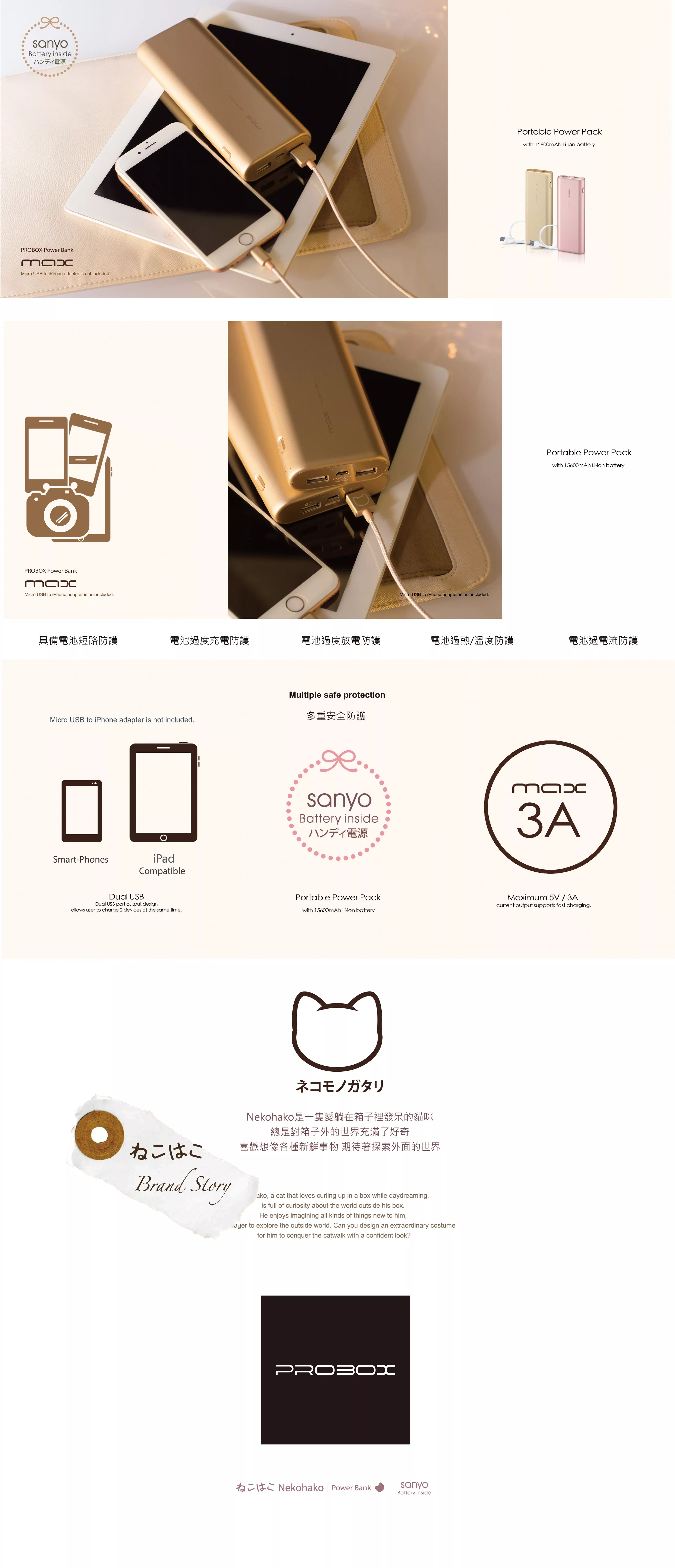 終極選購指南!PROBOX 三洋電芯 雙輸出 典雅美型15600mAh 行動電源-璀璨金 璀璨金牌子好