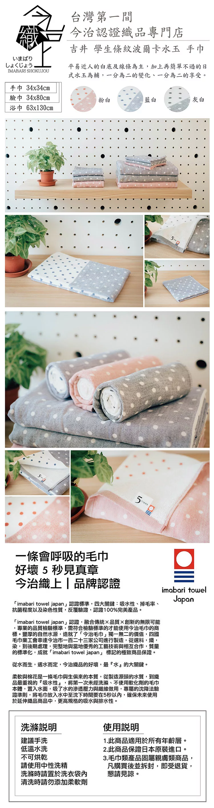具備了哪些功能的【今治織上】日本今治毛巾 今治認證 吉井 學生條紋波爾卡水玉 (手巾)粉白好用?如何選購